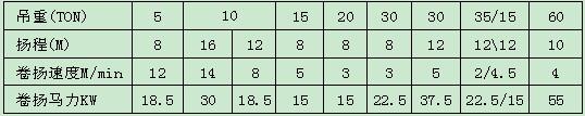 二、 電動吊車特性: